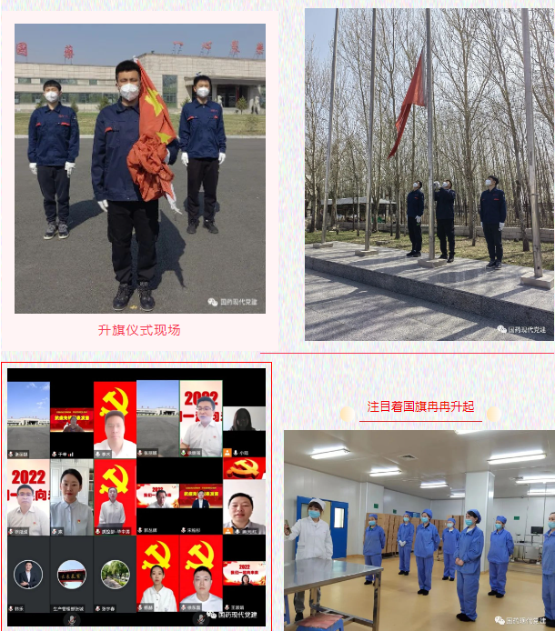 迎着朝阳,全体职工准时守候在手机、电脑前,通过视频参加升旗仪式,伴随着宏伟庄严的国歌,注视着国药一心厂区冉冉升起的国旗,油然而生的自豪感与归属感让所有人心潮澎湃、热泪盈眶。