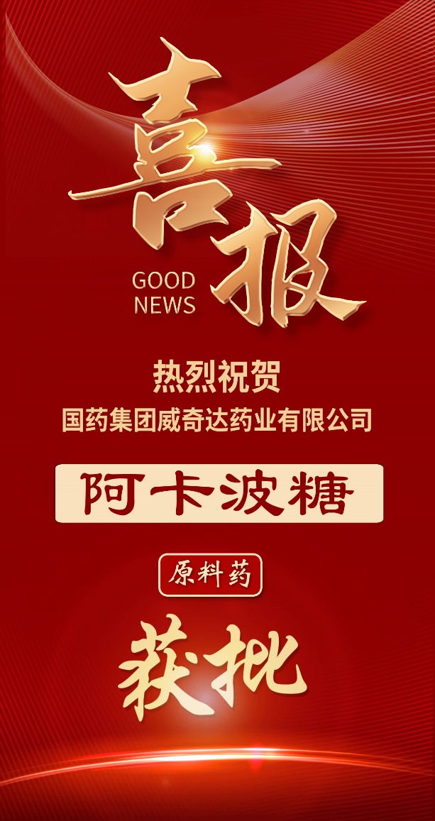 近日,国药威奇达收到国家药品监督管理局核准签发的《化学原料药上市申请批准通知书》,批准阿卡波糖原料药在国内市场生产销售。