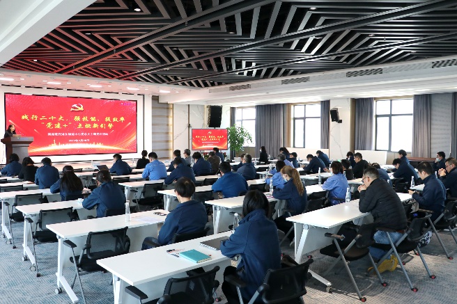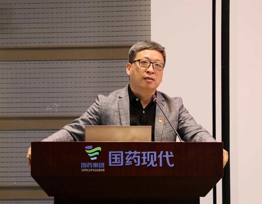 国药现代浦东制造中心党总支书记、总经理吴春扬同志以《“党建+”点燃新引擎》为题,从党的二十大主题、中国现代化进程、高质量发展的核心要义等方面向一线党员宣讲了党的二十大精神,宣贯了国药现代浦东制造中心高质量发展路径,部署了中心“党建+”重点任务。