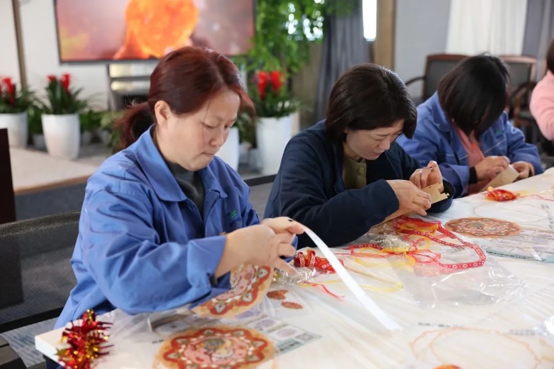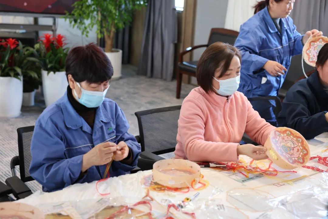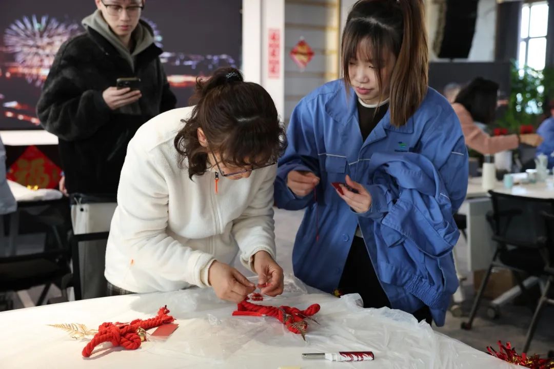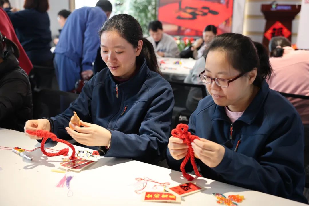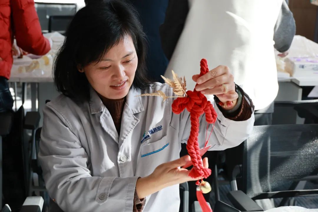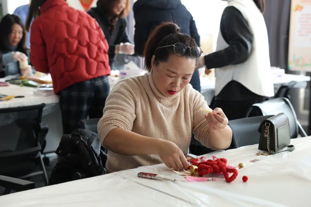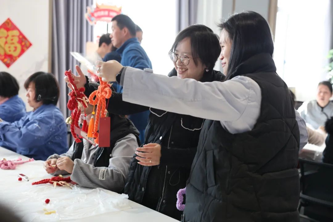 手工编结区的新年中国结,镶嵌着吉祥的图案,如同编织着美好的祝愿。职工们纷纷挑选着心仪的中国结,许下对祖国的祝福和家的安康。