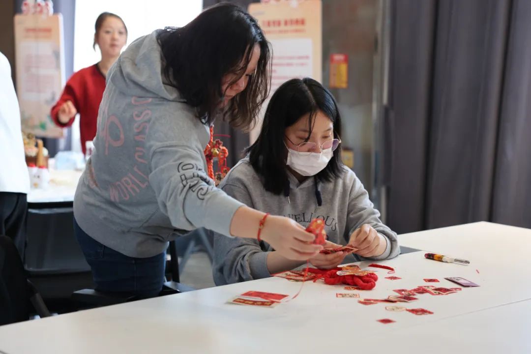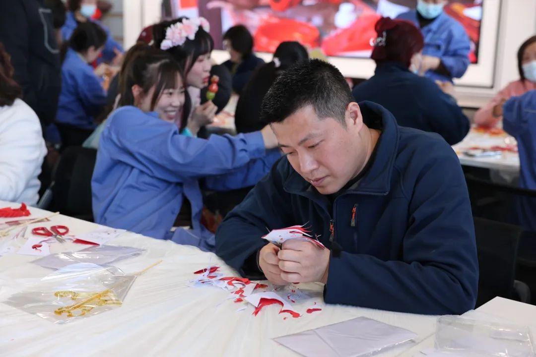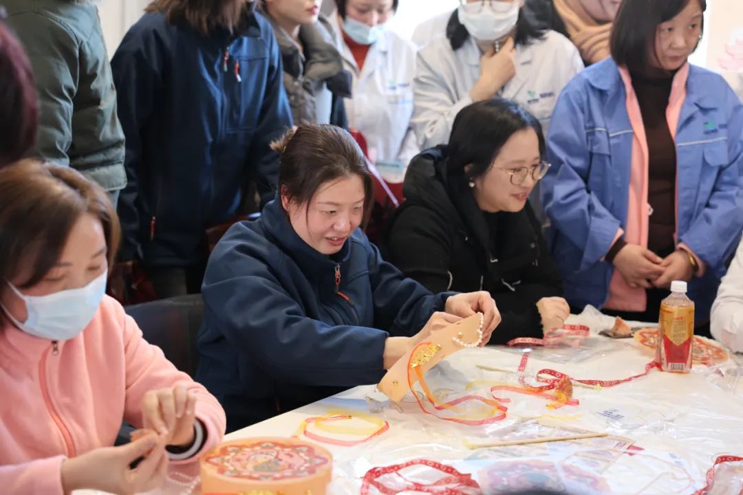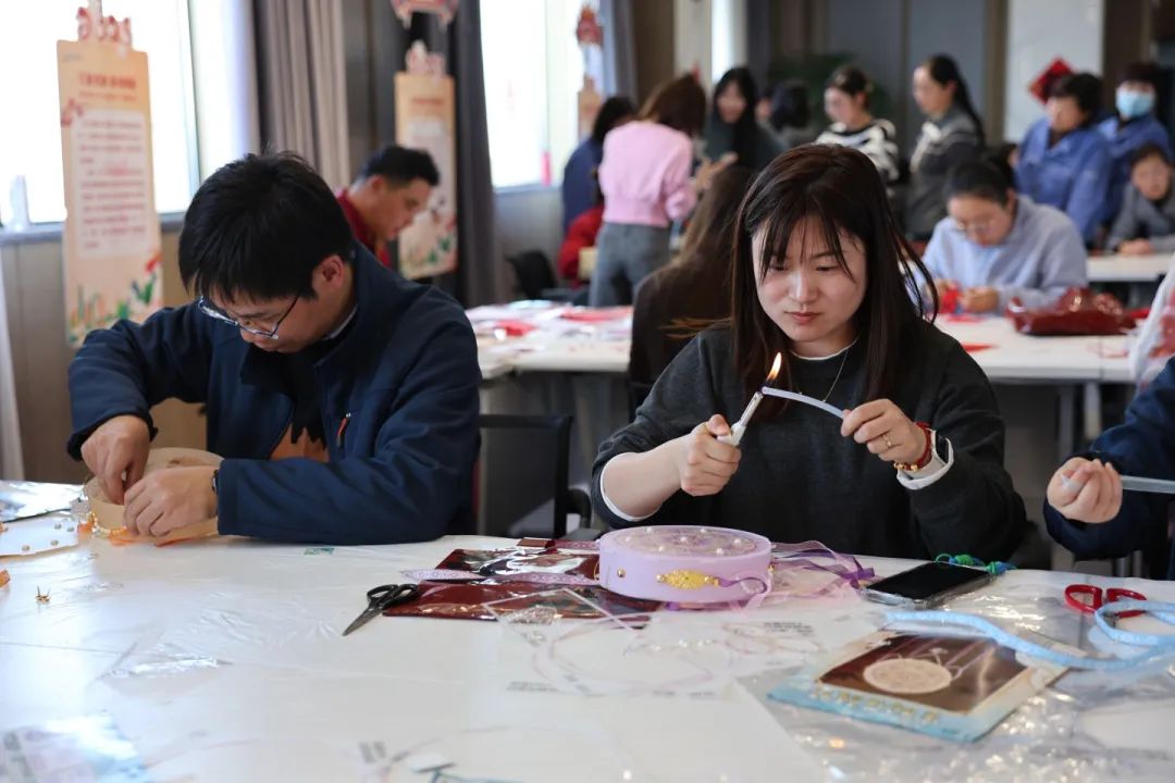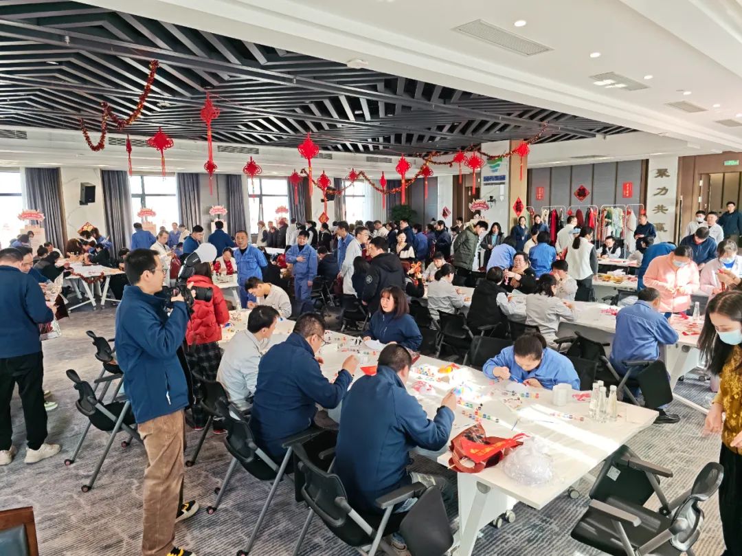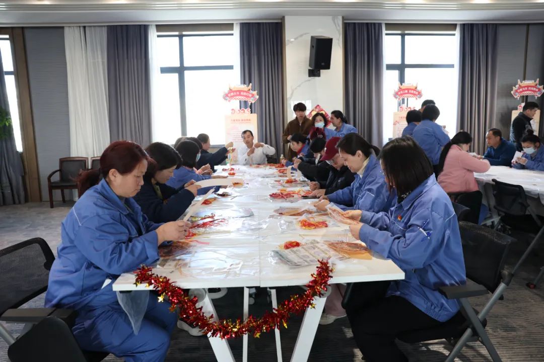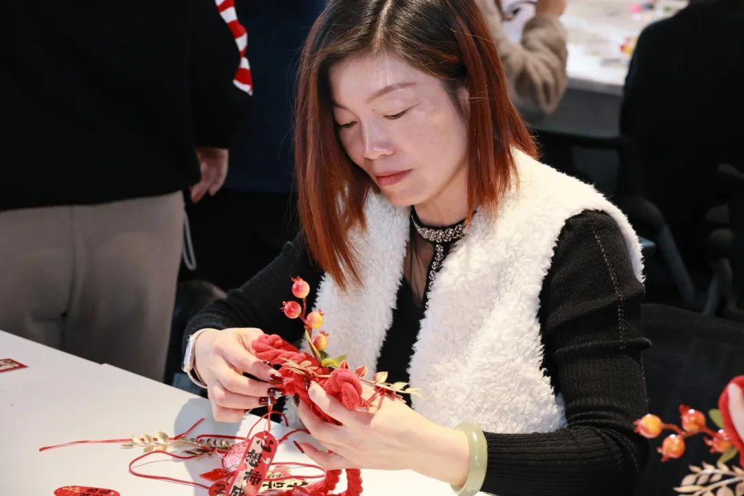手工编结区的新年中国结,镶嵌着吉祥的图案,如同编织着美好的祝愿。职工们纷纷挑选着心仪的中国结,许下对祖国的祝福和家的安康。