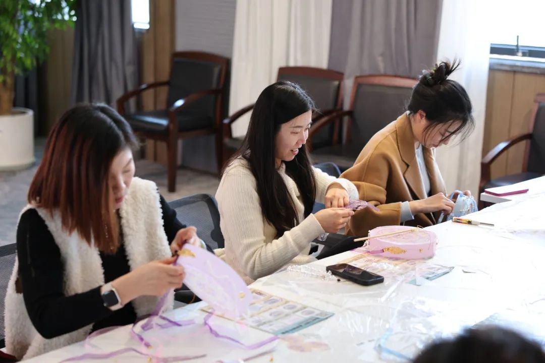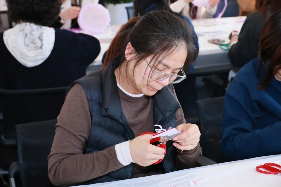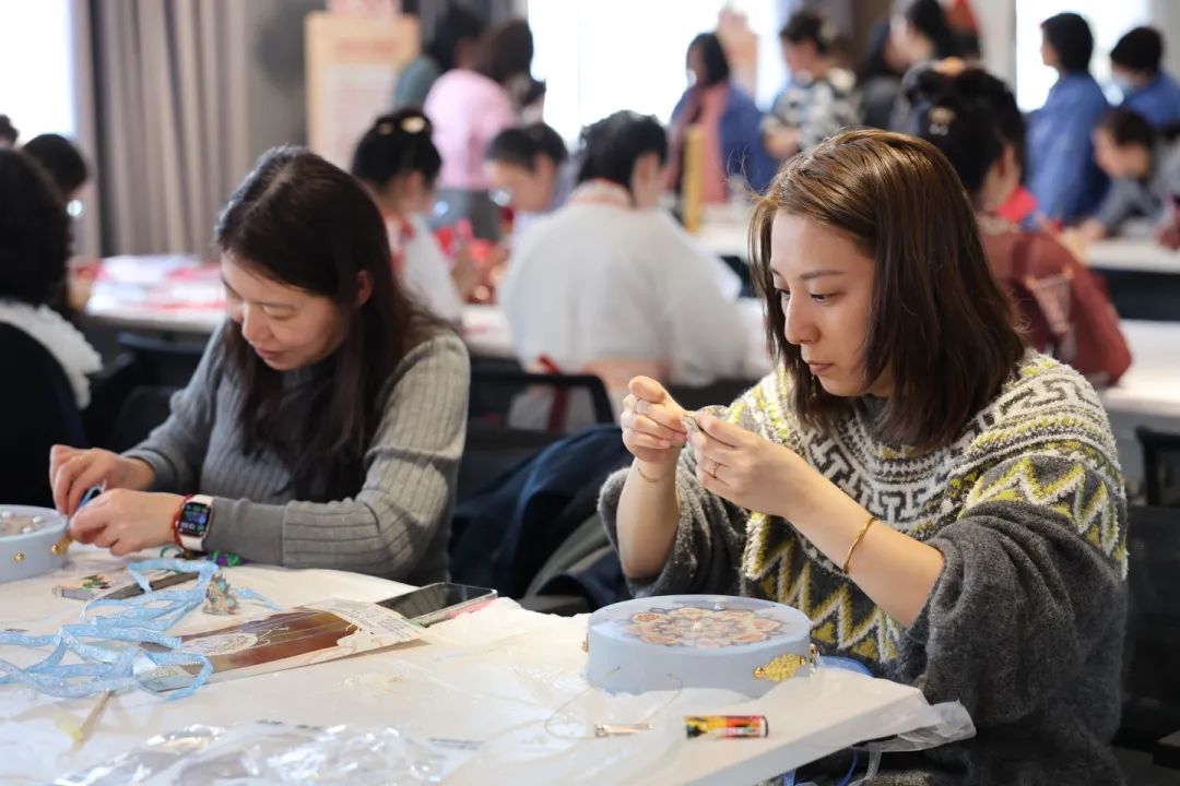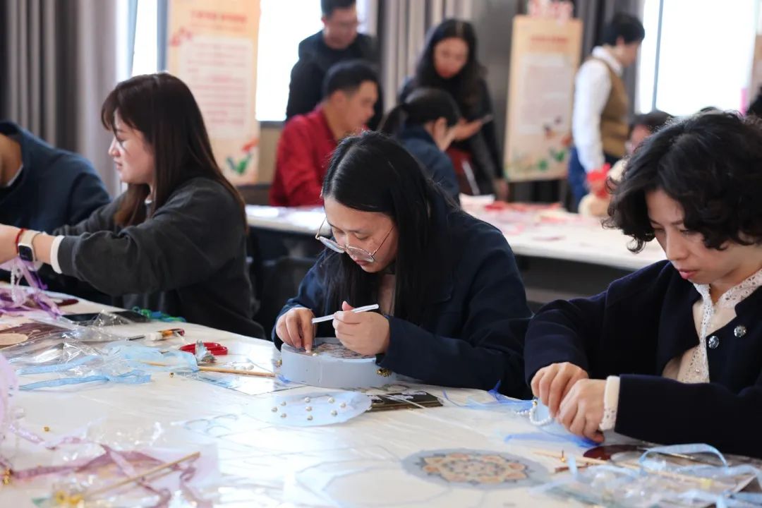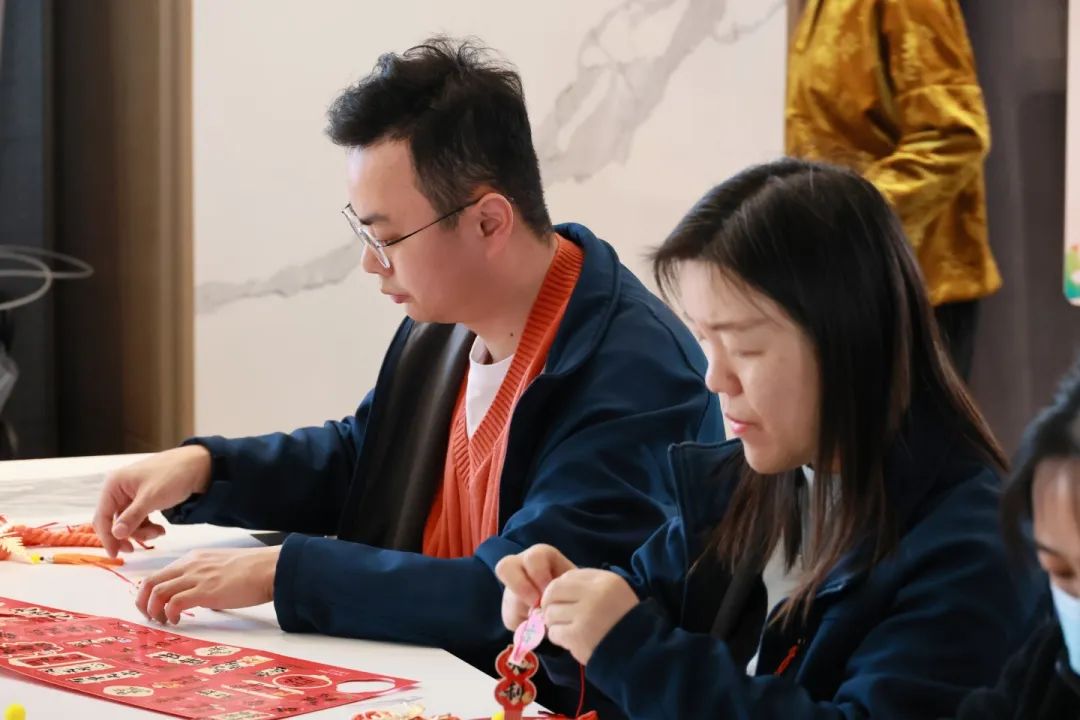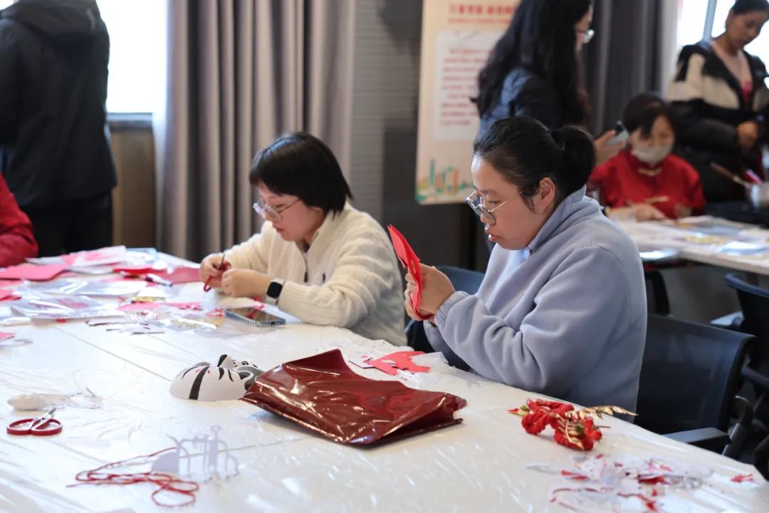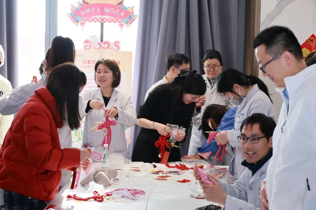 手工编结区的新年中国结,镶嵌着吉祥的图案,如同编织着美好的祝愿。职工们纷纷挑选着心仪的中国结,许下对祖国的祝福和家的安康。