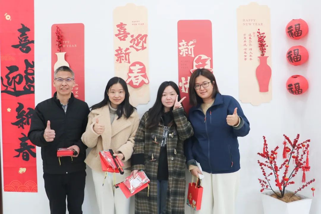 璀璨夺目的传统花鼓灯区,员工们驻足观赏,镜头下定格着新春的欢乐与美好。
