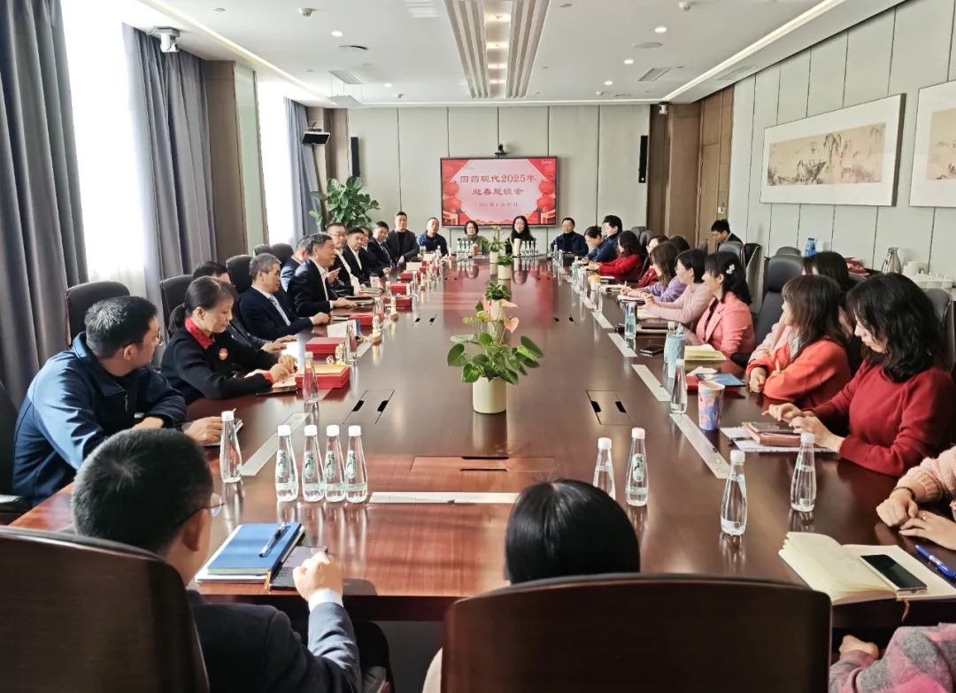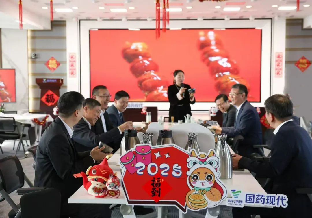 这里:国药现代迎春恳谈会正进行中,党政班子成员和全体中层管理人员促膝谈心。党委书记、董事长许继辉和党委副书记、总裁刘勇分别讲述着在国药集团成长的经历,以及对工作和学习的思考。与会人员纷纷动情地回顾着国药现代近30年的发展历程和上市20年来的可喜变化,更是表达了对未来的期待,预祝国药集团、国药现代再创佳绩。
