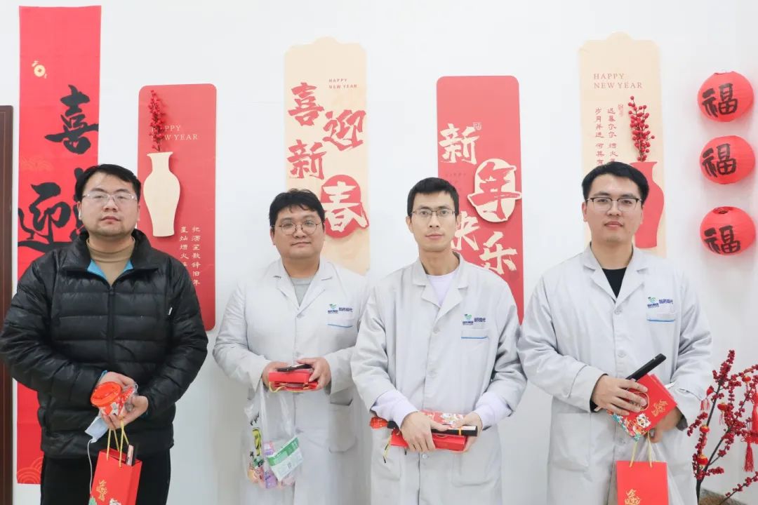 员工食堂,大家收到了祝福满满的大红福袋,又吃上了亲手包的饺子,品尝了甜蜜的蛋糕。热热闹闹、开开心心,国药现代家人们共同迎接新春的到来,祝愿新的一年里,万象更新,新春纳福,未来依然携手共进,再立新功!