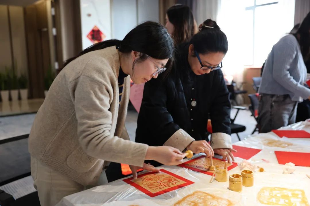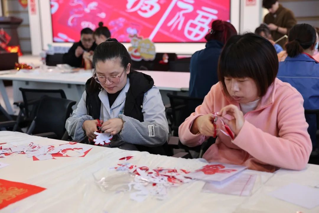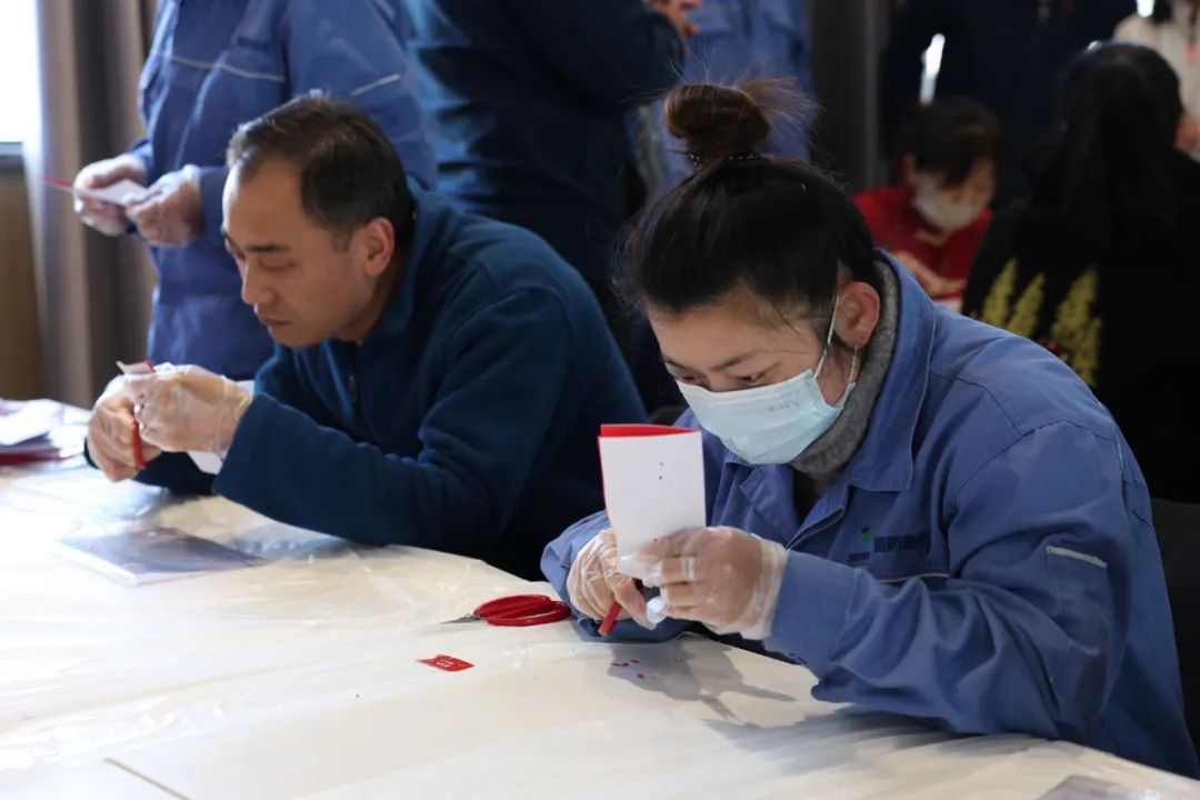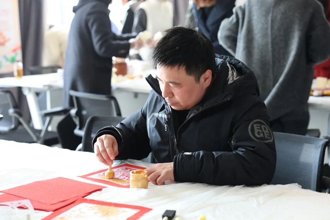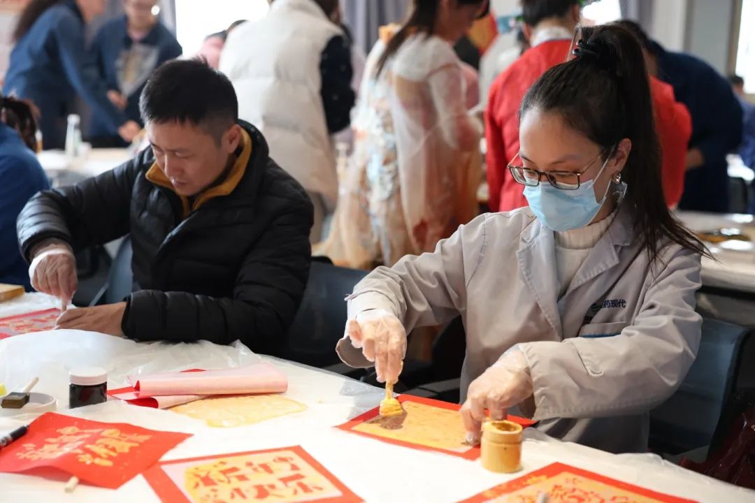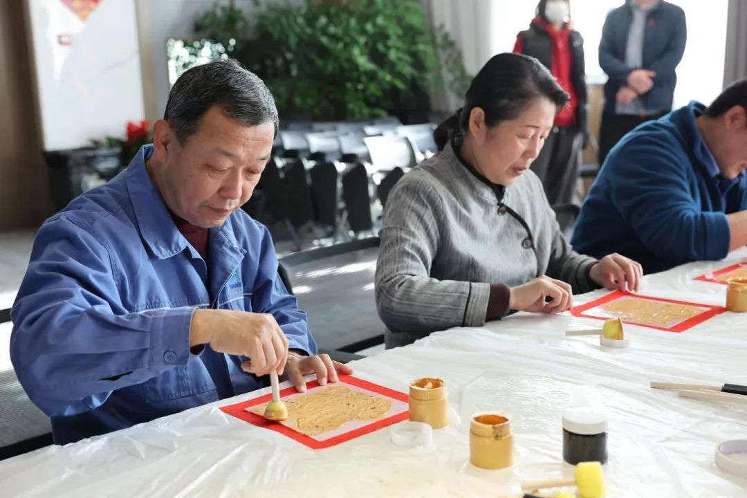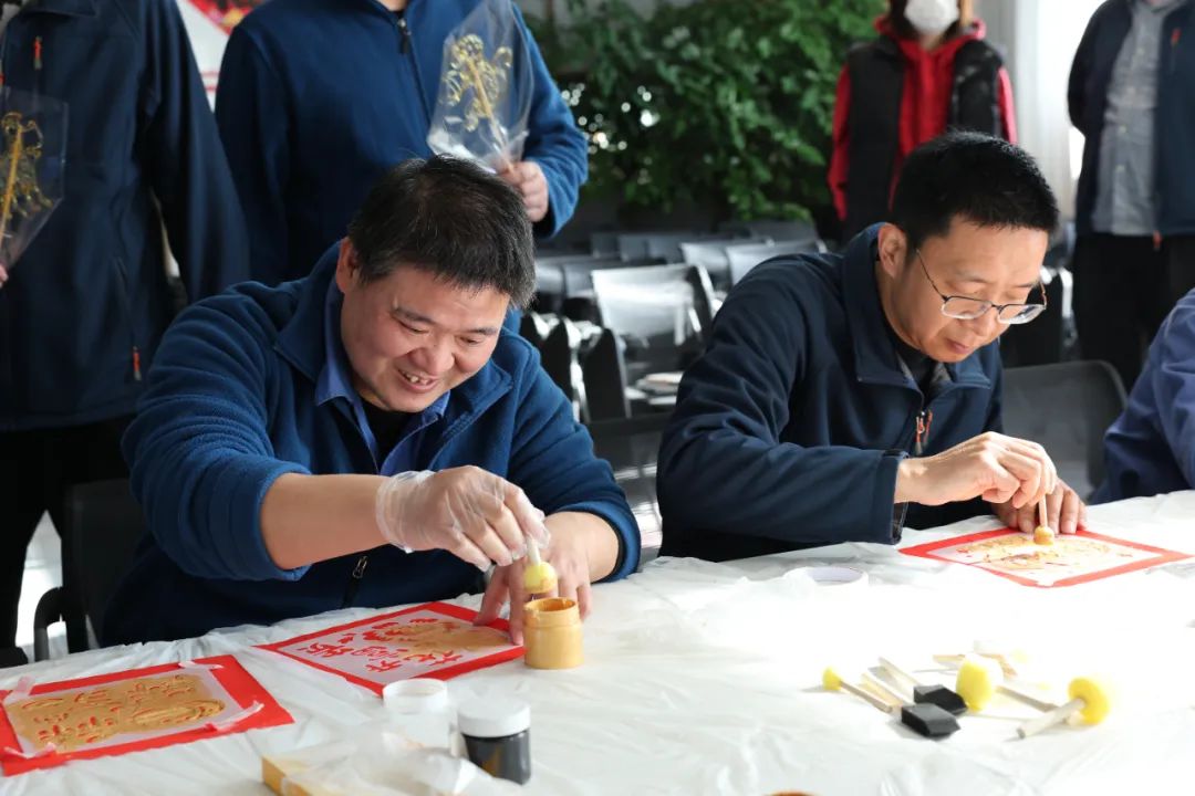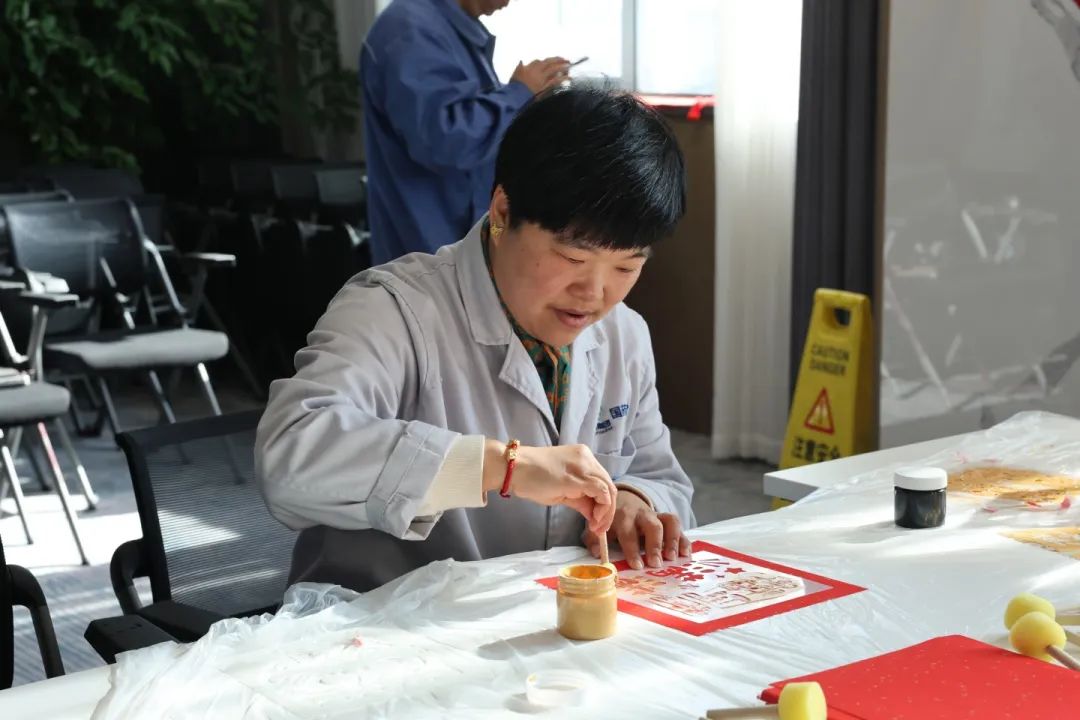 非遗拓印区,一股古朴的气息扑面而来。职工们亲手挑选着各式各样的拓印石,有的上面刻着古朴“福”字,有的则雕刻着春意盎然的“春”字,他们小心翼翼地蘸上墨汁,轻轻按压在宣纸上,这是对春节欣喜的祝福。