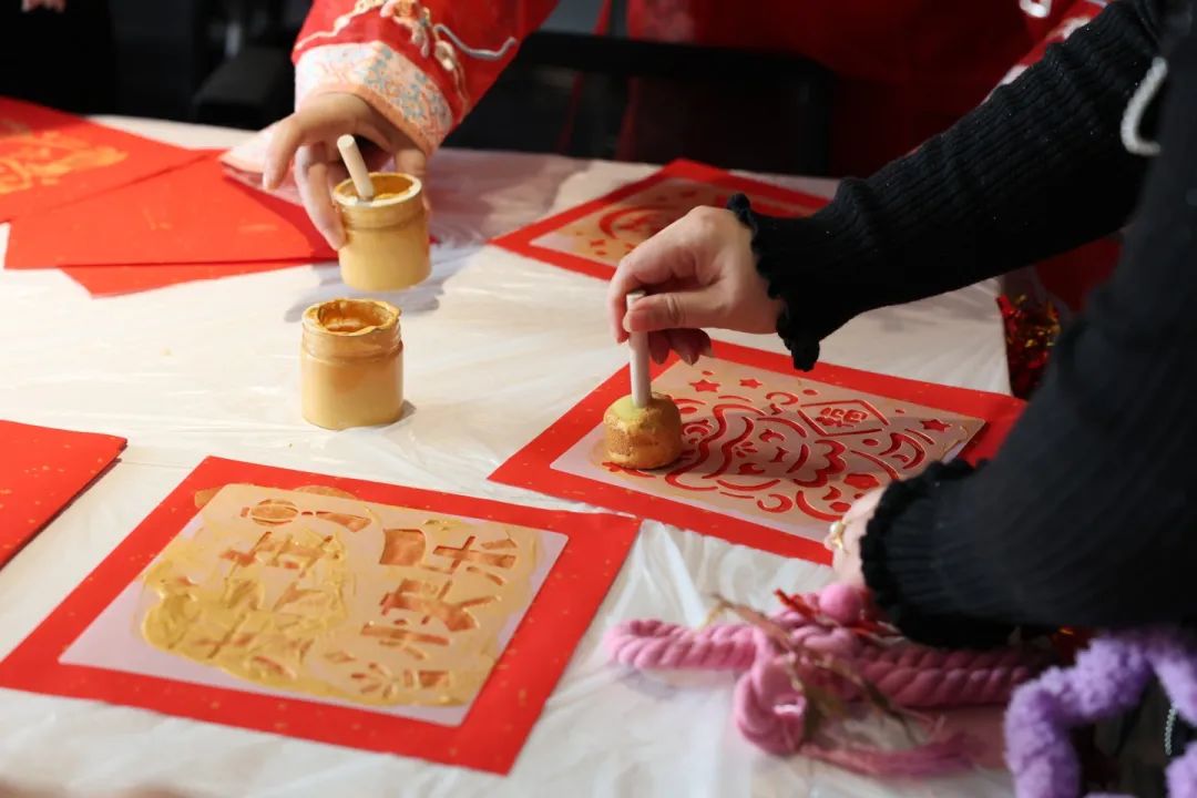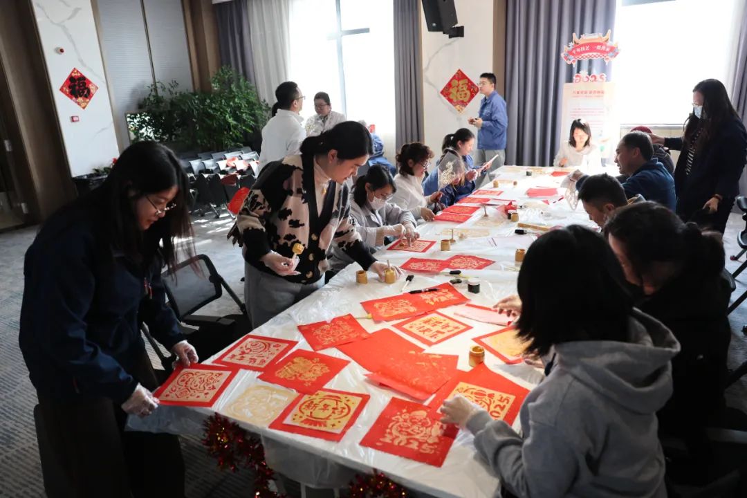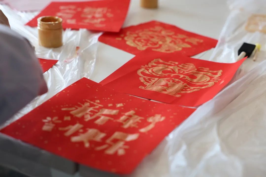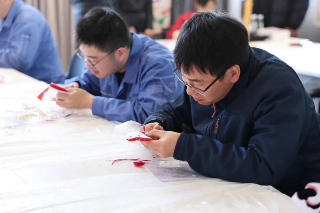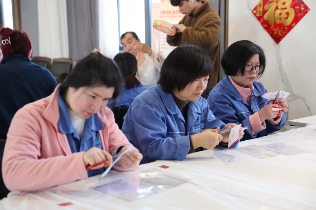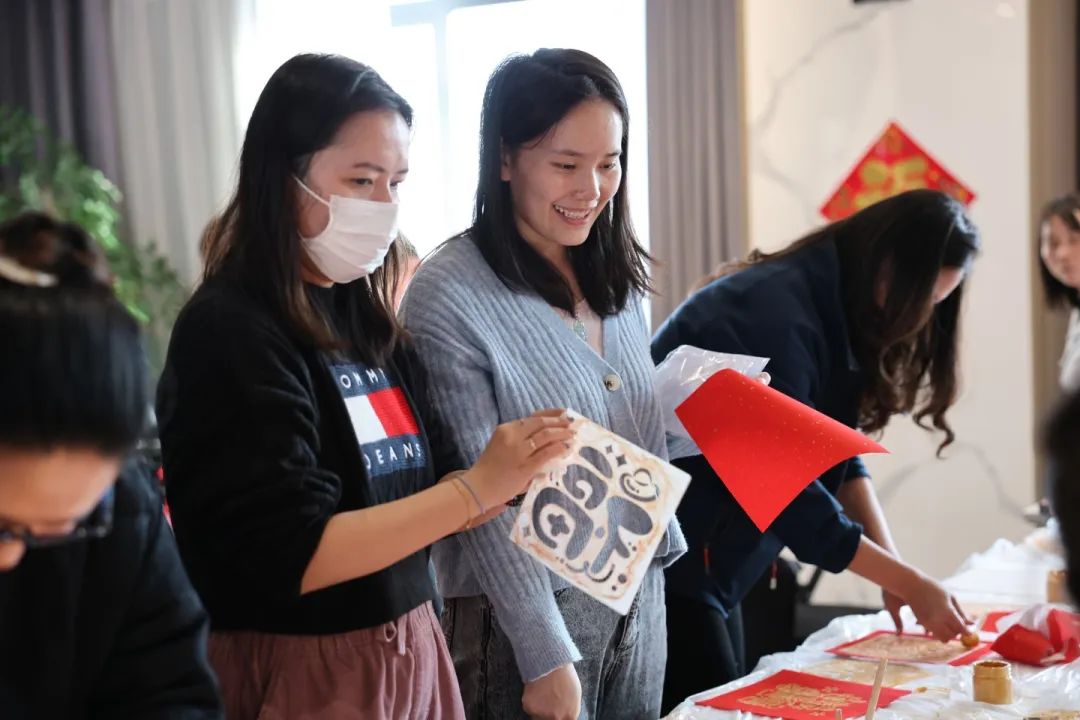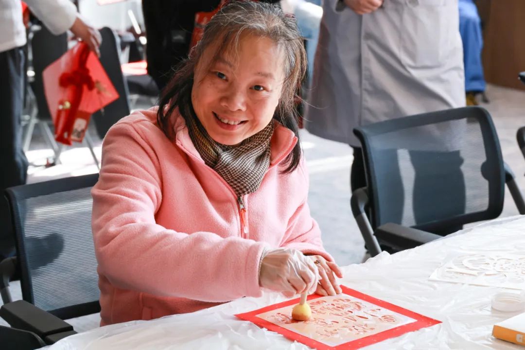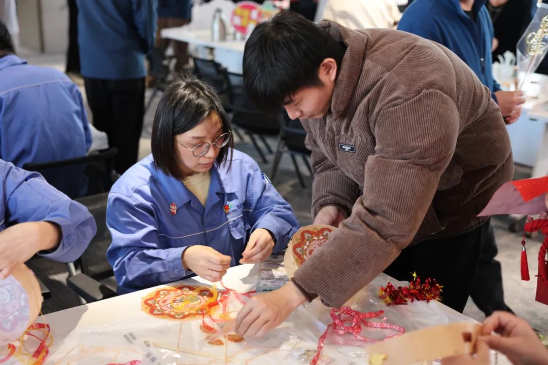 非遗拓印区,一股古朴的气息扑面而来。职工们亲手挑选着各式各样的拓印石,有的上面刻着古朴“福”字,有的则雕刻着春意盎然的“春”字,他们小心翼翼地蘸上墨汁,轻轻按压在宣纸上,这是对春节欣喜的祝福。
