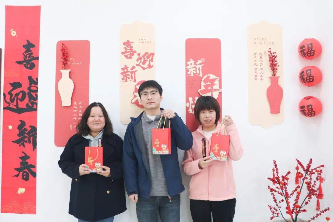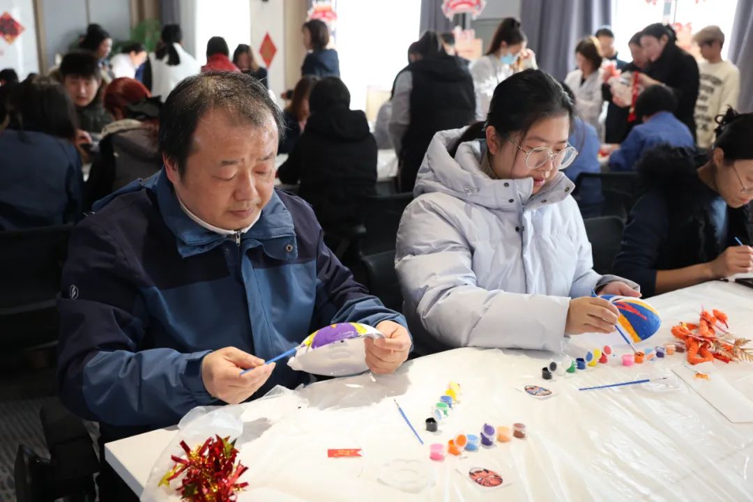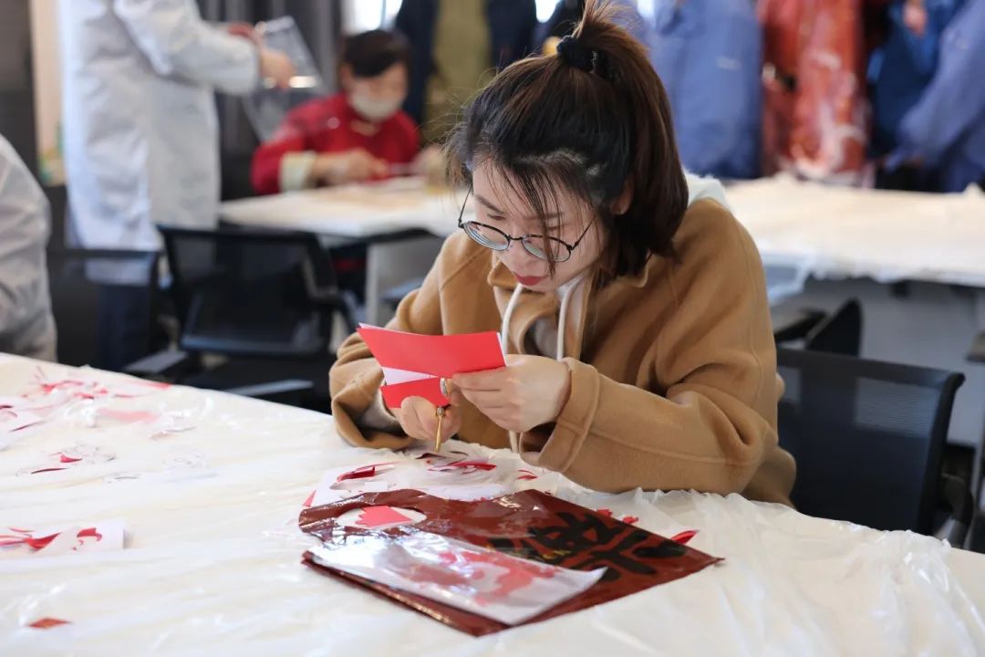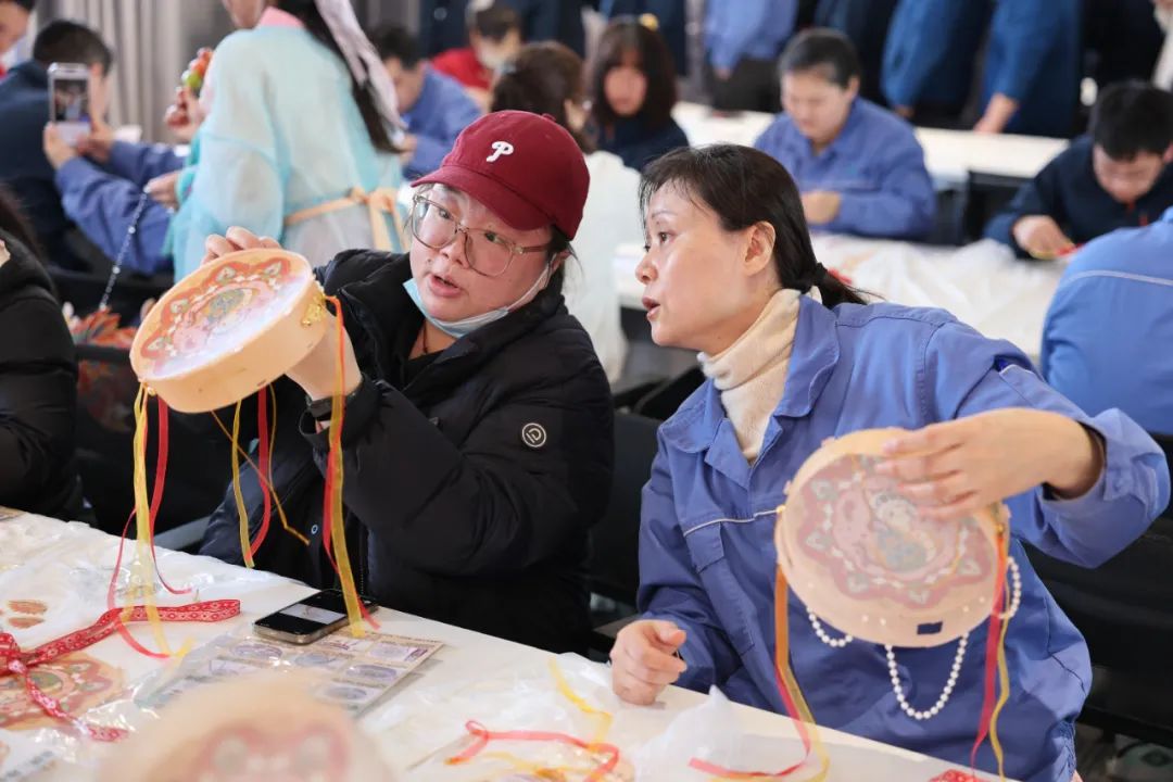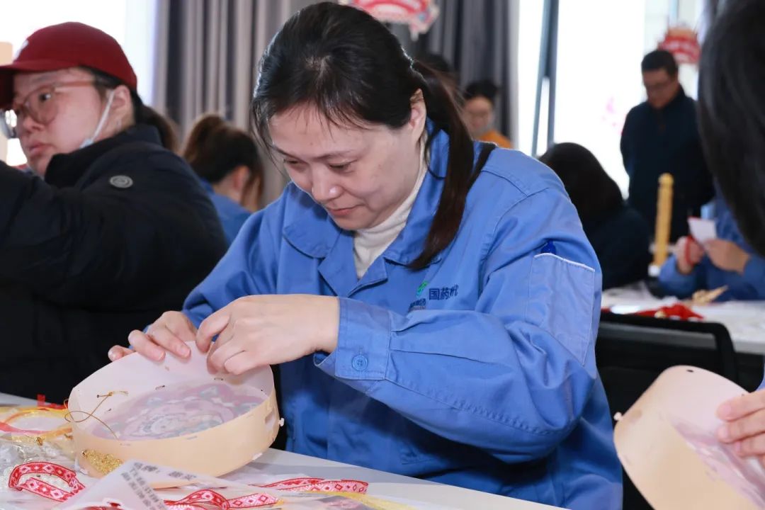 这里:游园会现场,高高挂起的中国结与四周的“福”字春联相映成趣。灯笼、彩带、鲜花,每一处都洋溢着浓浓的新春气息和家的温暖。国药现代党政班子成员来到游园会现场,向辛勤工作的员工们表示亲切慰问,与员工们一同驻足于各非遗游园区域。