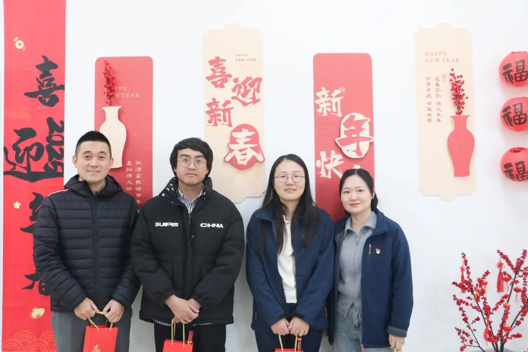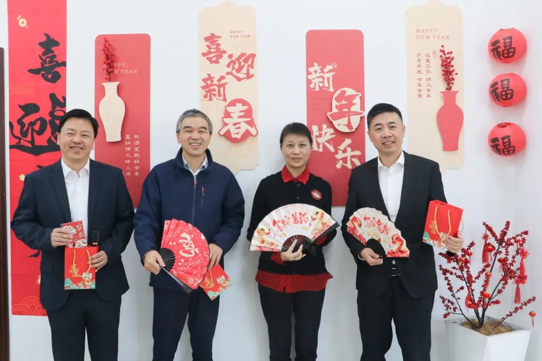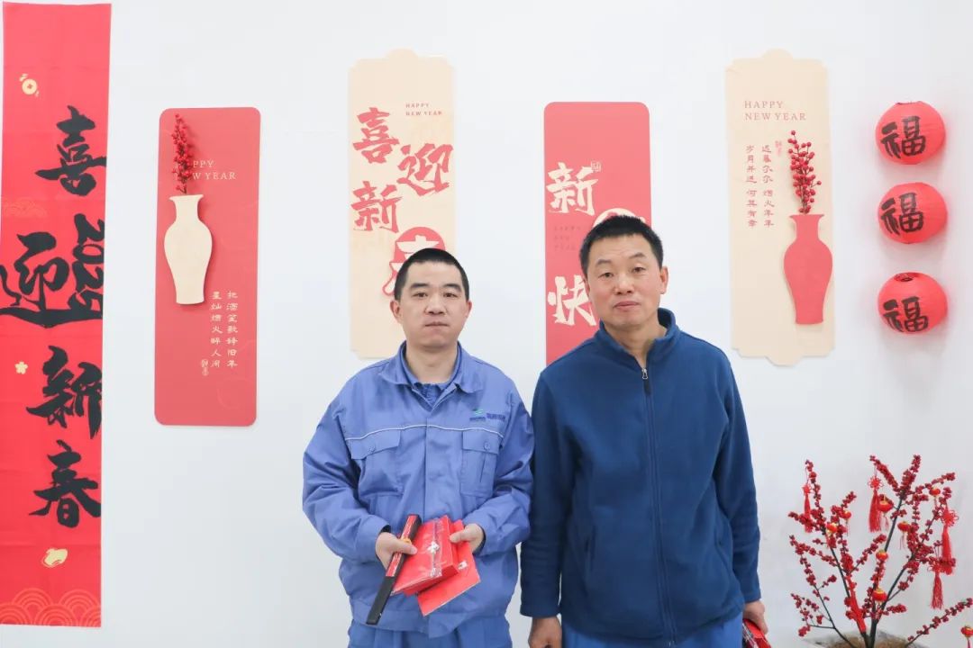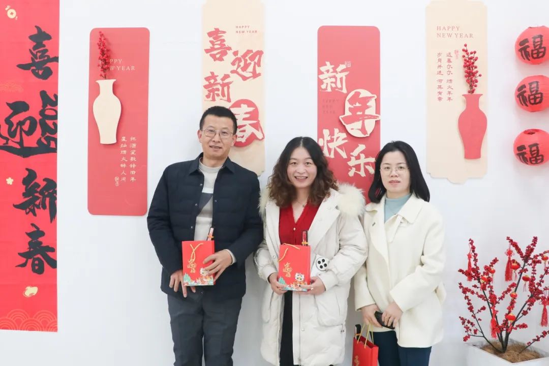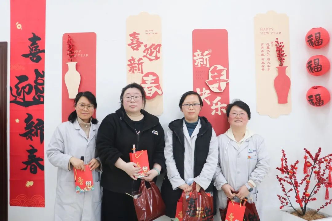 这里:游园会现场,高高挂起的中国结与四周的“福”字春联相映成趣。灯笼、彩带、鲜花,每一处都洋溢着浓浓的新春气息和家的温暖。国药现代党政班子成员来到游园会现场,向辛勤工作的员工们表示亲切慰问,与员工们一同驻足于各非遗游园区域。