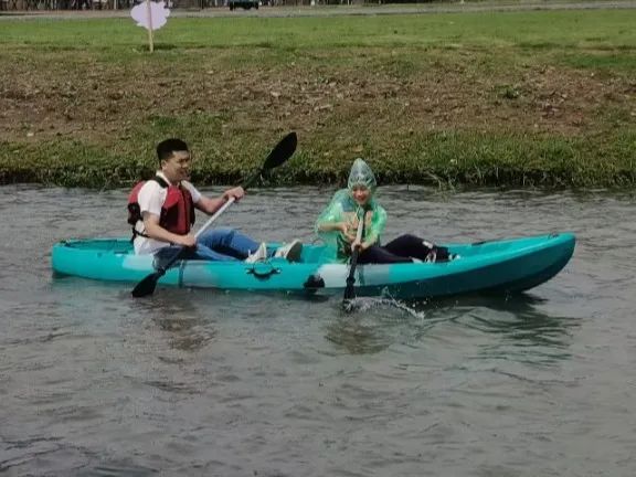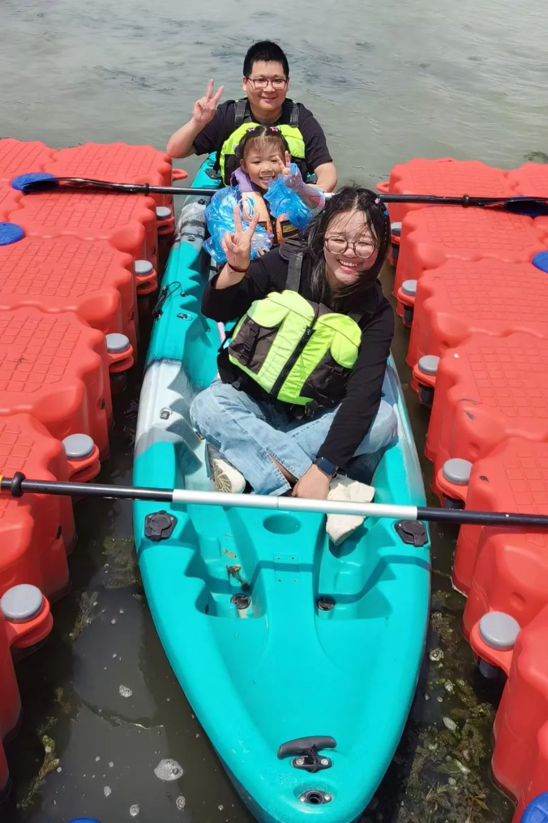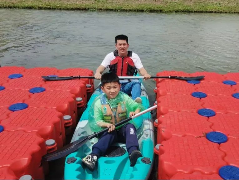 "小船长们,准备启航!"随着教练一声令下,彩色皮划艇如彩虹鱼一只只跃入湖面。孩子们乘坐着皮滑艇,像一群欢快的小鸭子,在家长的陪伴下尽情划桨。微风吹过湖面,小艇像陀螺般在水面打转,溅起的水花惹得岸上的家长笑弯了腰。