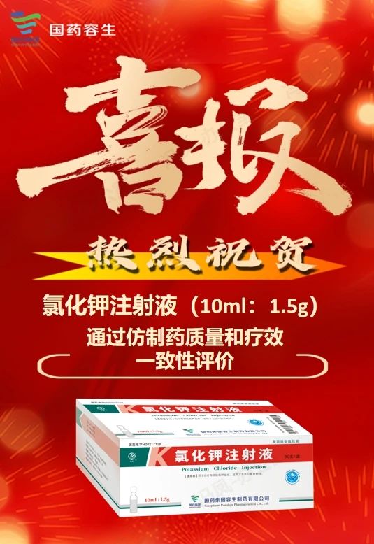 捷报频传,收获满满。近日,子公司国药容生收到国家药品监督管理局核准签发的《药品补充申请批准通知书》,批准氯化钾注射液(10ml:1.5g)通过仿制药质量和疗效一致性评价。