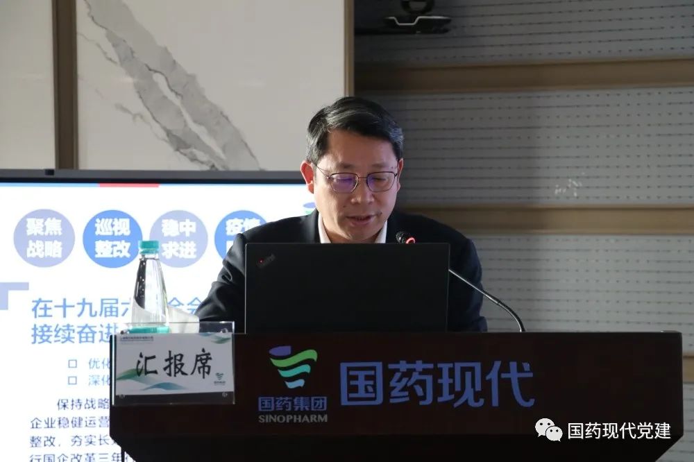 党委副书记、纪委书记、工会主席余向东代表国药现代党委作了2021年度党建工作报告,部署了2022年党建重点工作。副总裁李显林、龚忠、魏冬松,财务总监祖敬,总工程师傅民,市场总监余凡等6位领导分别就2021年度各条线业务开展情况进行了分析回顾,并针对2022年重点工作任务进行全面部署。13家子公司负责人分别就2021年工作回顾和2022年度工作安排进行了重点汇报交流。