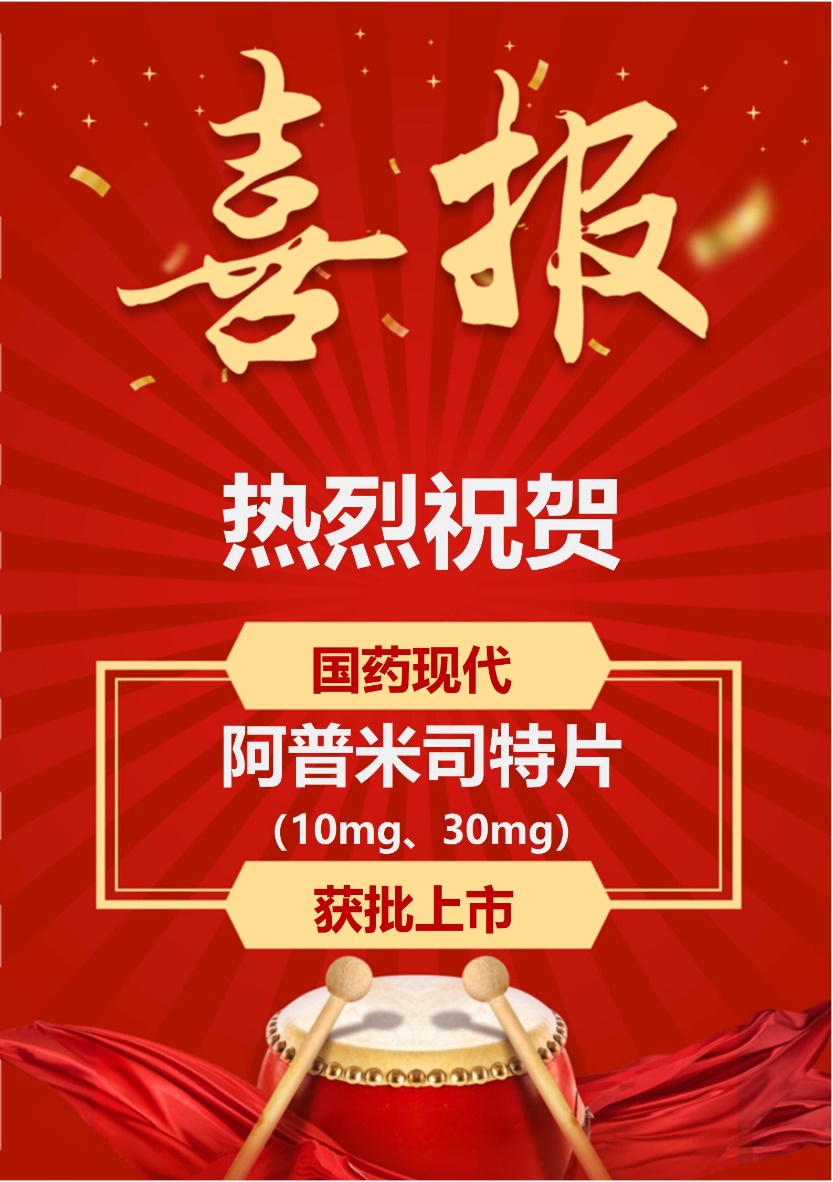 近日,公司获得国家药品监督管理局核准签发的《药品注册证书》,批准阿普米司特片(10mg、30mg)注册上市。
