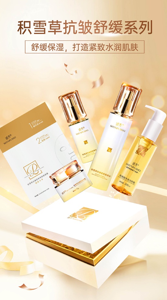 该系列以积雪草提取物、胶原、烟酰胺等为主要宣传点,舒缓保湿,打造紧致水润肌肤,产品包括积雪草抗皱舒缓润肤水,积雪草抗皱舒缓精华液、积雪草抗皱舒缓赋活霜、积雪草抗皱舒缓冻干精华液,适用于松弛下垂,需要抗皱的人群。