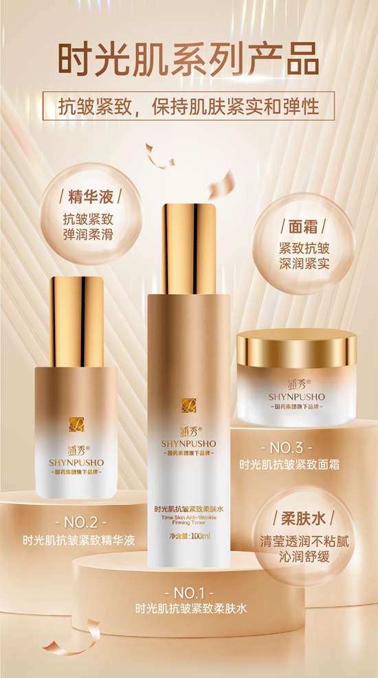 该系列以积雪草提取物、麦角硫因、桃树酯提取物等为主要宣传点,抗皱紧致,保持肌肤紧实和弹性,产品包括时光肌抗皱紧致柔水,时光肌抗皱紧致精华液、时光肌抗皱紧致面霜,适用于熟龄肌肤人群。