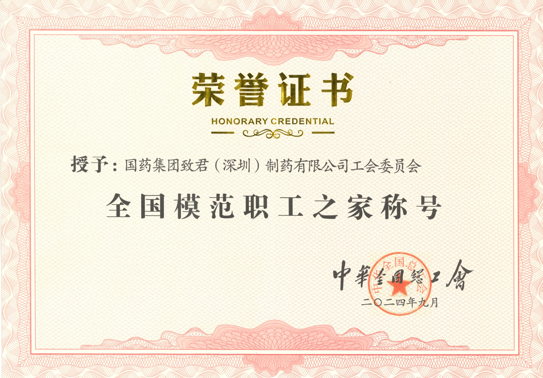 “全国模范职工之家”荣誉称号是全国工会组织建设的最高荣誉,是对基层工会工作的最高褒奖和肯定。国药致君工会从层层评选中脱颖而出,以昂扬奋进的姿态,成为 996 个 " 全国模范职工之家 " 称号中的一员。这一殊荣,为公司国家级荣誉榜再添璀璨一笔。